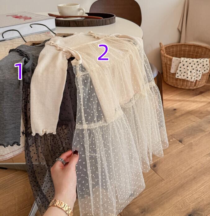 「2024」子供服★レースワンピース+長袖シャツ★セットアップ★韓国風子供服★2色80cm~130cm