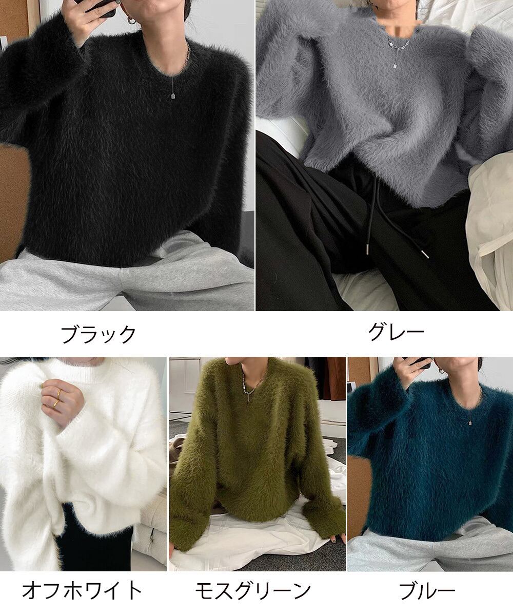 モヘアニットセーター レディース ふわふわニットプルオーバー オシャレ 秋冬シャギーセーター 韓国風 大人可愛いトップス