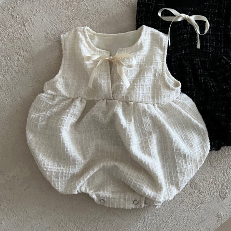 2025春新作 ベビー服 ノースリーブ ロンパース 女の子 可愛い リボン カバーオール 子供服 柔らか