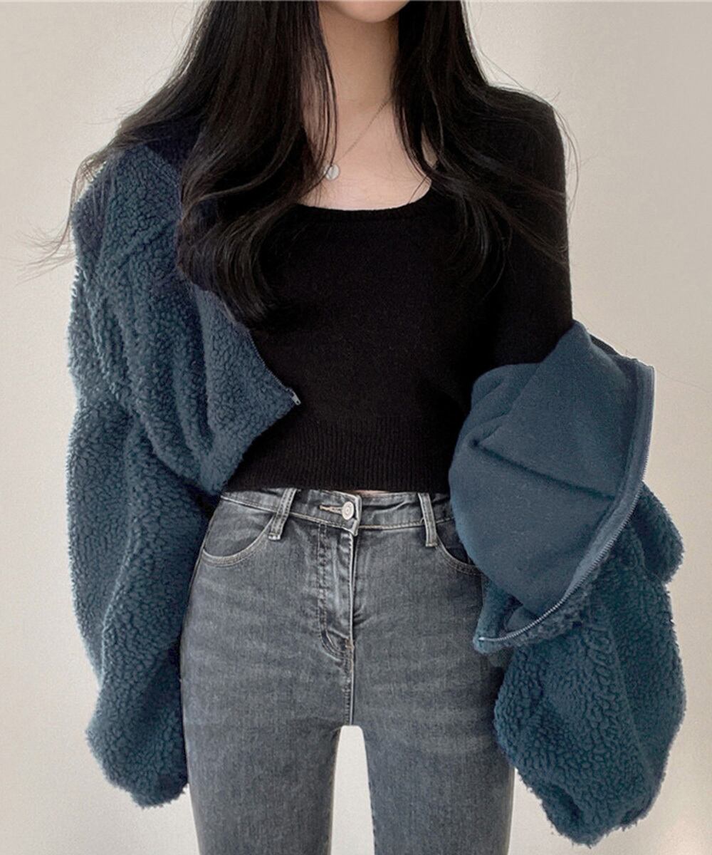 最旬のショート丈で中のコーデを選ばずスタイルアップできます