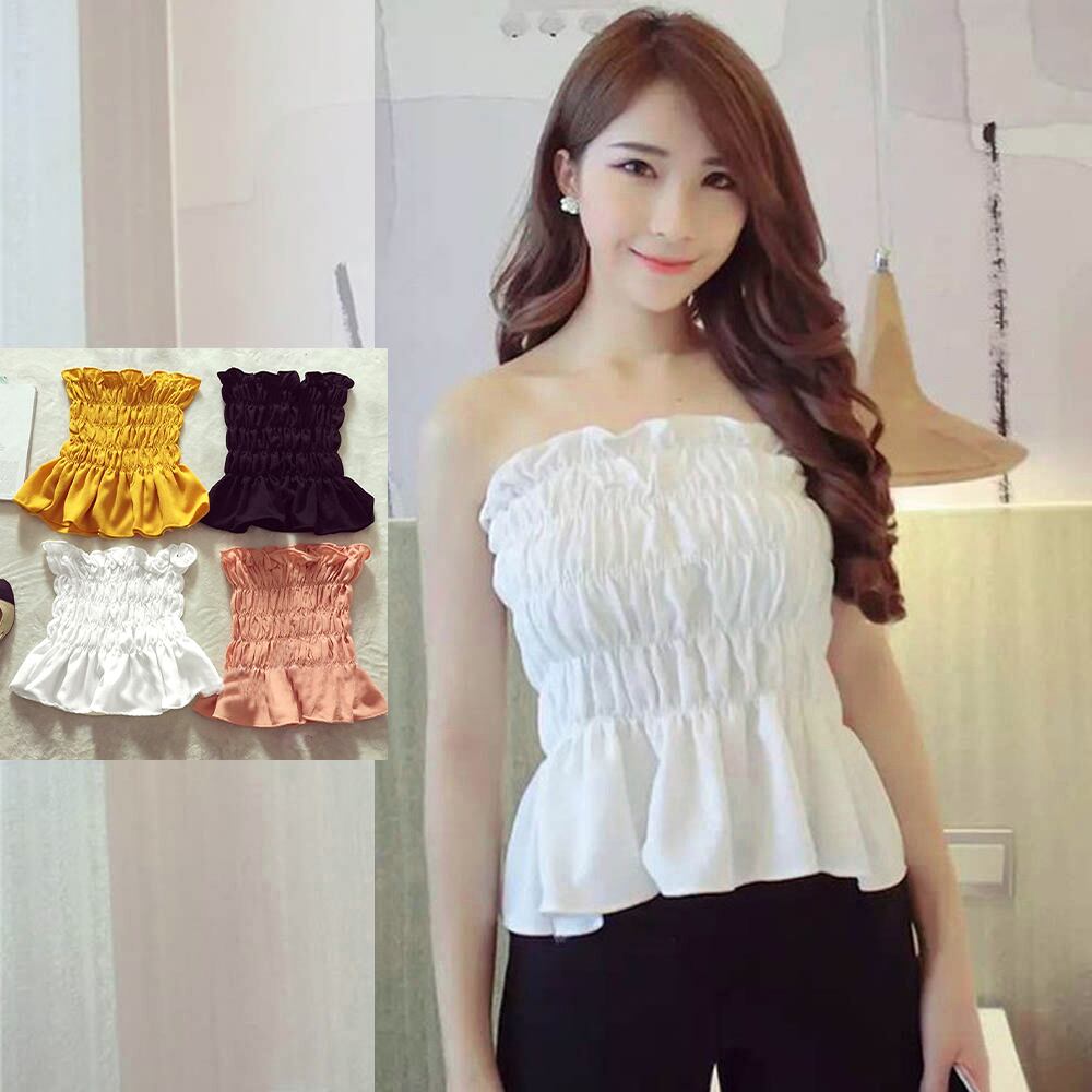 ベアトップ レディース チューブトップ 白 オフショルダー トップス 春夏 ゴム仕様 インナー ビスチェ カットソー