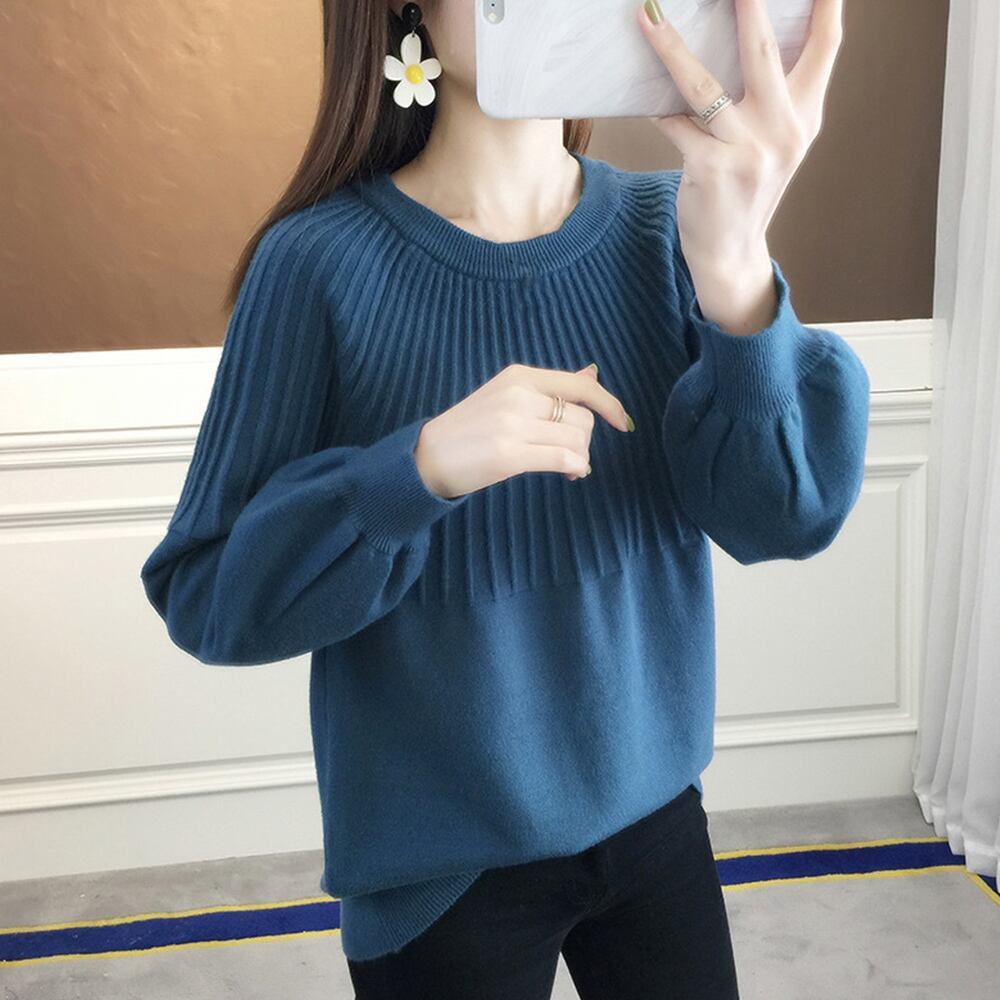 体型カバートップス シンプル長袖ニット お洒落ニットソー