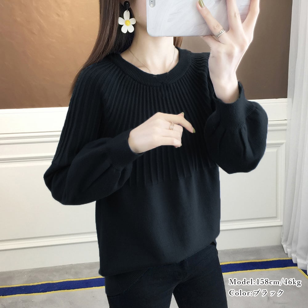 求心編みニットトップスパフスリーブ 韓国