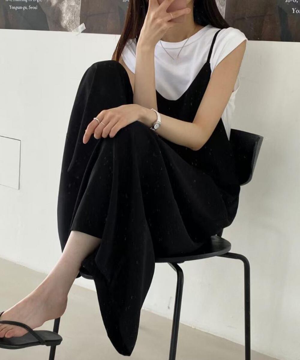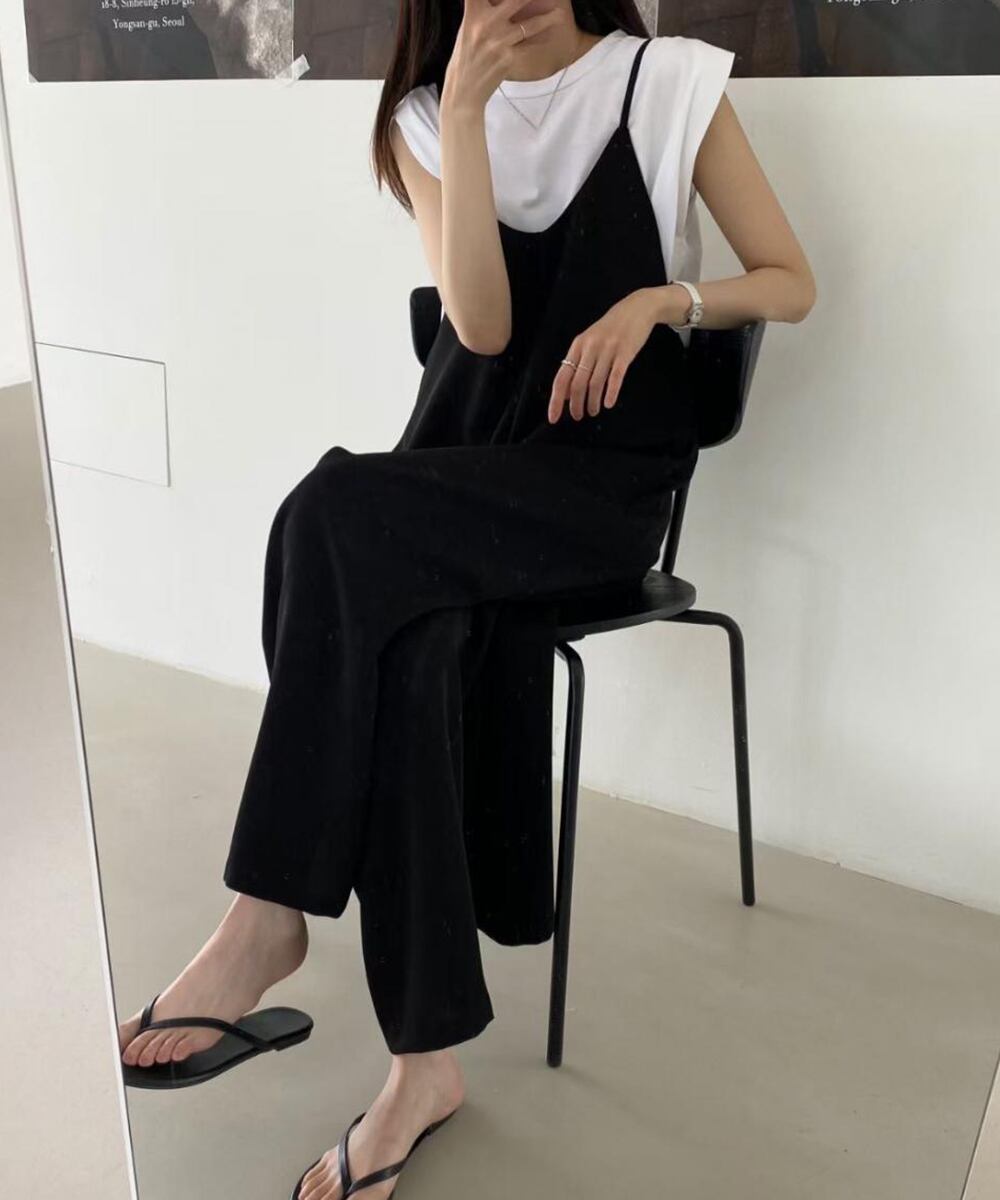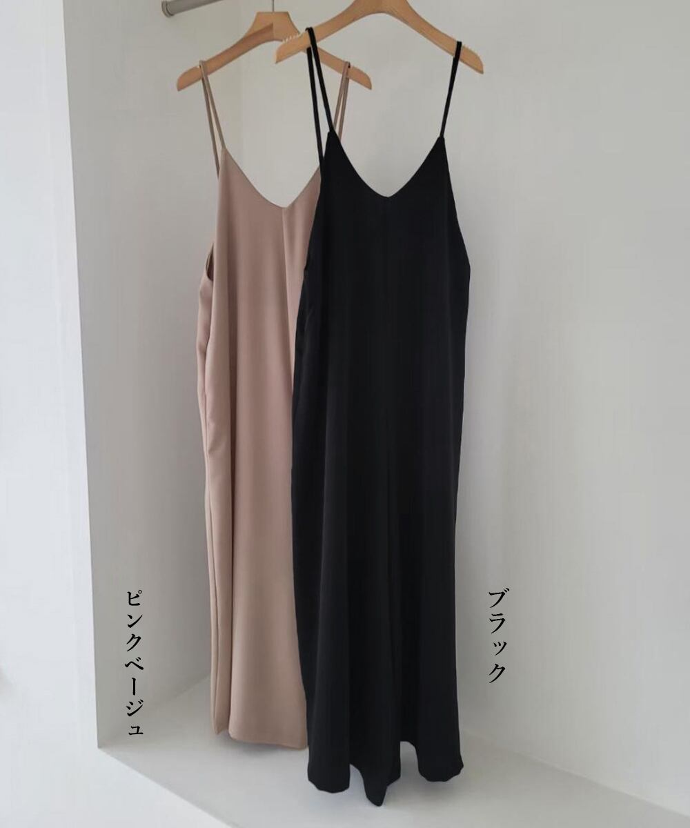 体型カバーパンツ つなぎワイドパンツ キャミサロペット夏