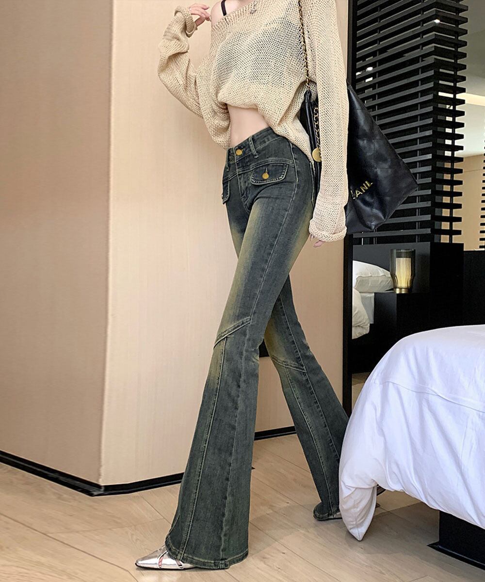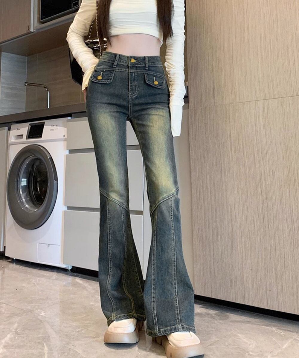 ジーパン ヴィンテージパンツ 美脚 脚長シーズン ブーツカットデニム カジュアル 着やせ ロングパンツ ストレッチパンツ