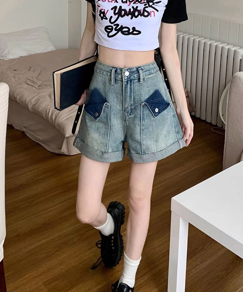 絶妙な丈感×ハイウエストデザインがスタイルアップをかなえてくれるデニムショートパンツ