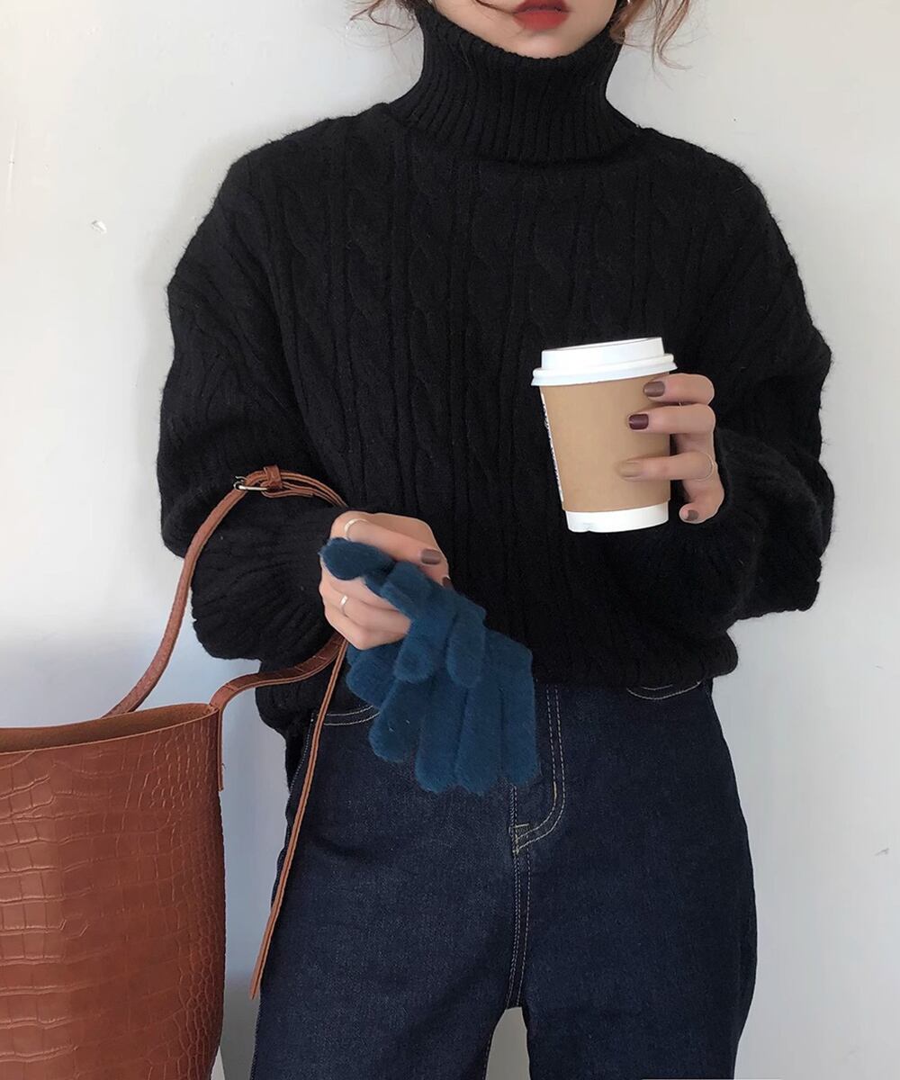 寒い季節にぴったりで、首元までしっかりカバーしてくれるタートルネックセーターです