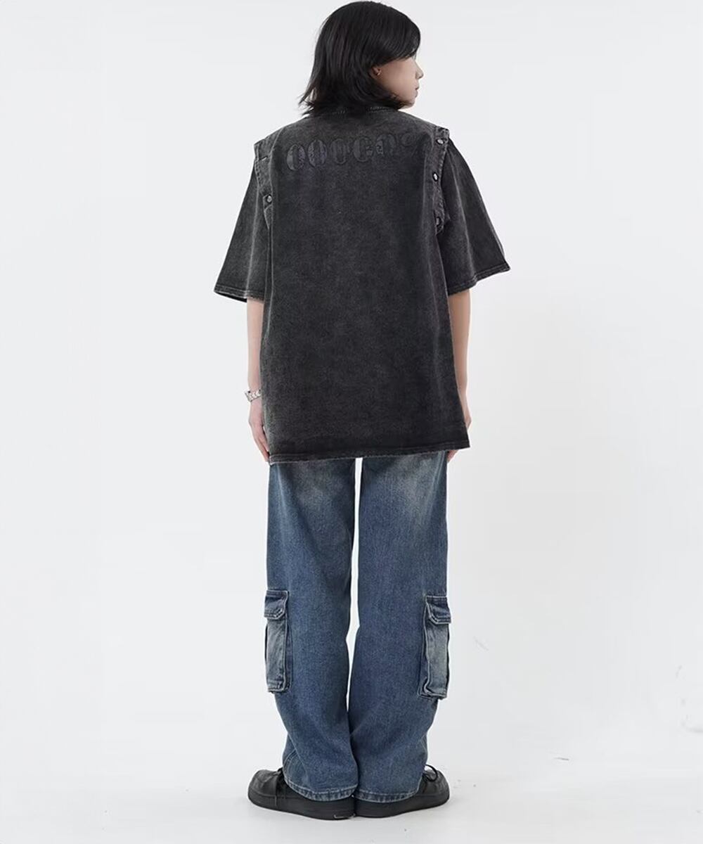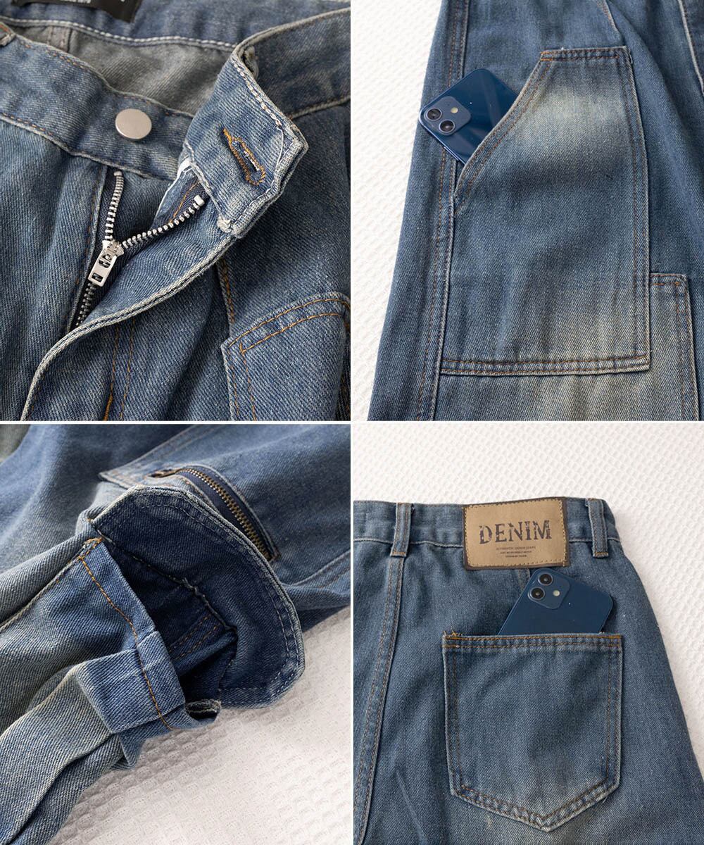 カーゴデニムパンツ 体型カバー デニム レトロデニム古着感