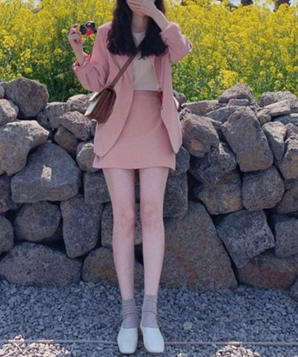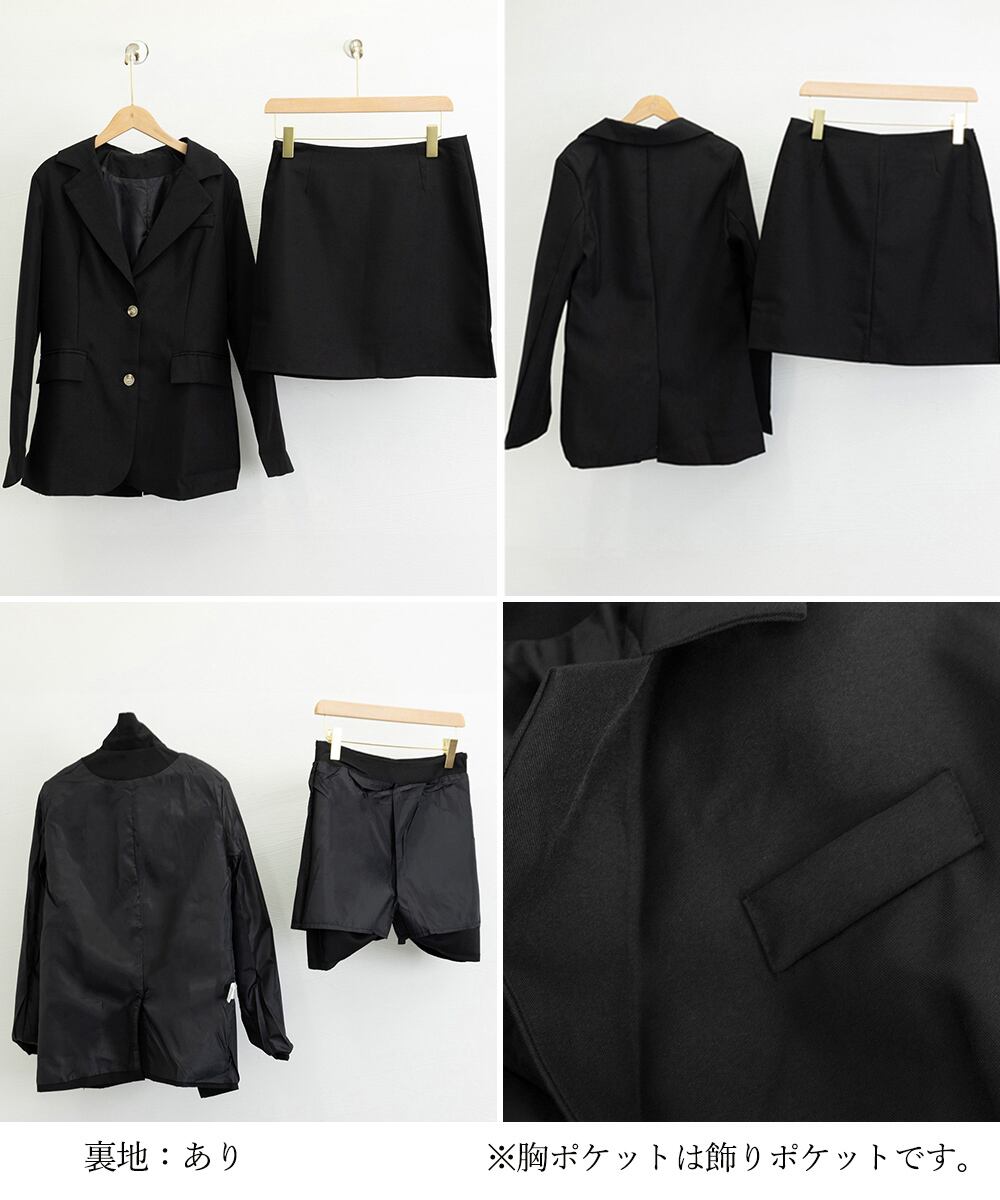 スーツスカート上下セットレディース 無地韓国ファッション ポケット付きライトアウター お洒落ボトムス 20代30代40代