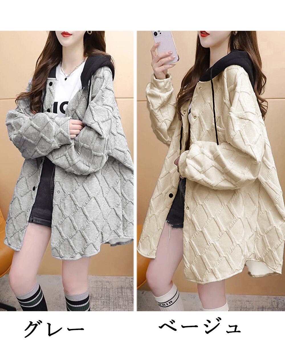 フード付きトレーナー長袖 ゆったり春秋服 体型カバー羽織り ジャカードジャケット ロング スウェットカーディガン お洒落