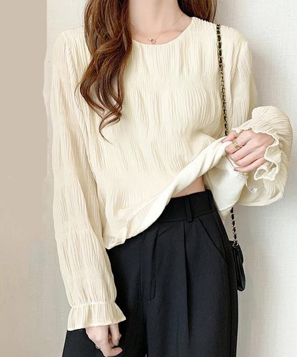 シャーリングブラウス 長袖トップス韓国風