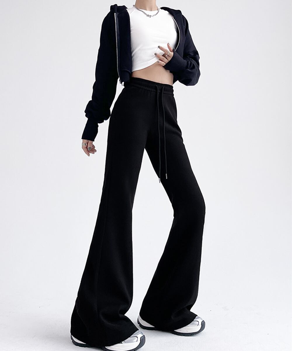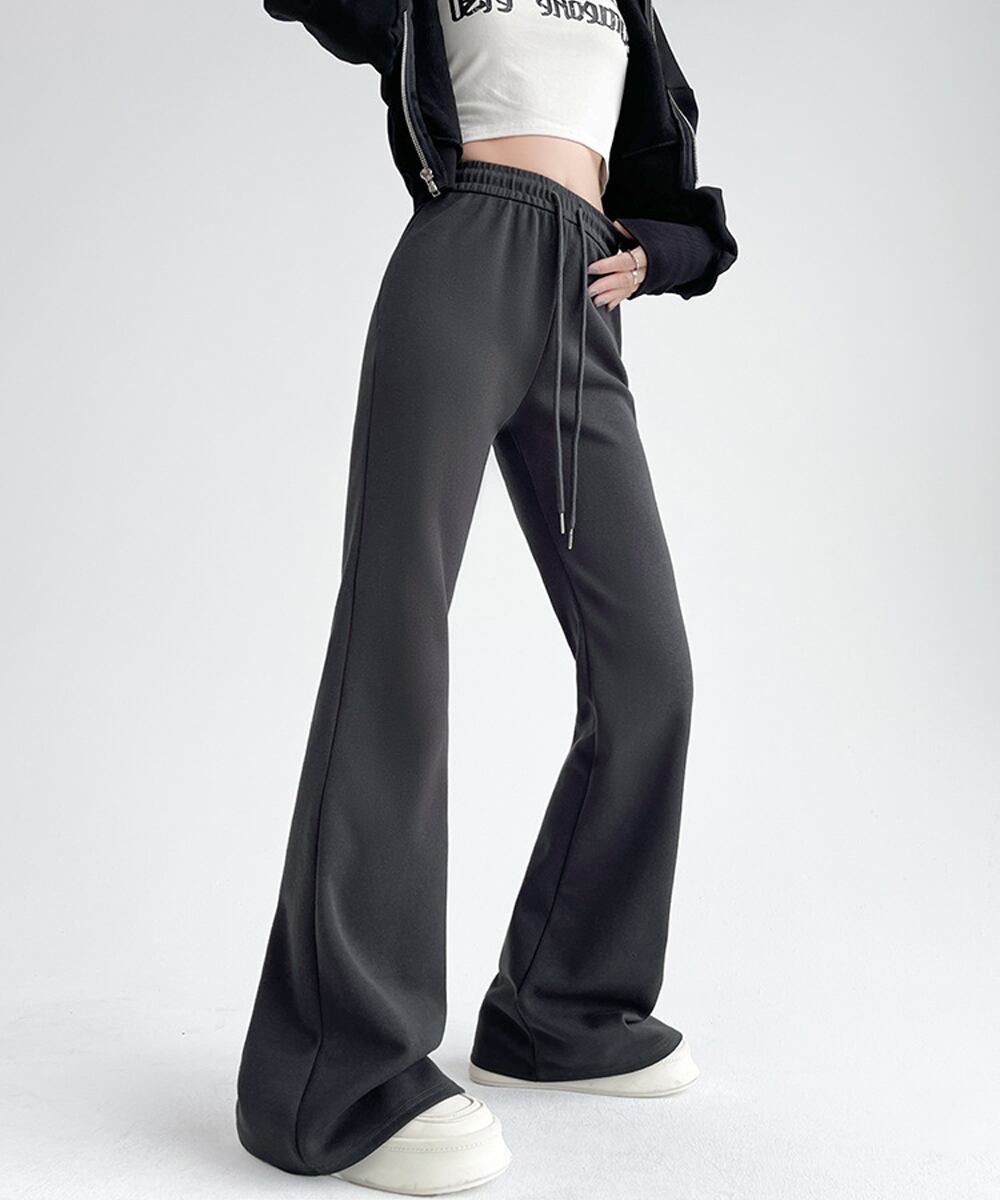 スウェットパンツ ハイウエスト ストレートパンツ 着やせ ウエストゴム オシャレ カジュアル お洒落