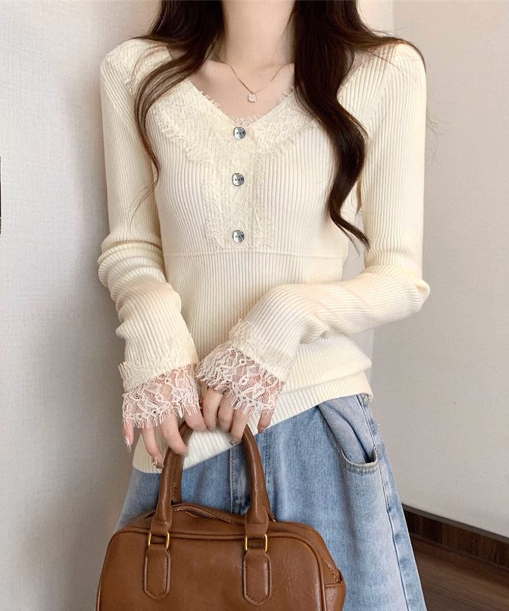 レース切り替えデザインが胸元と袖口を美しく引き立て、上品さと華やかさを演出