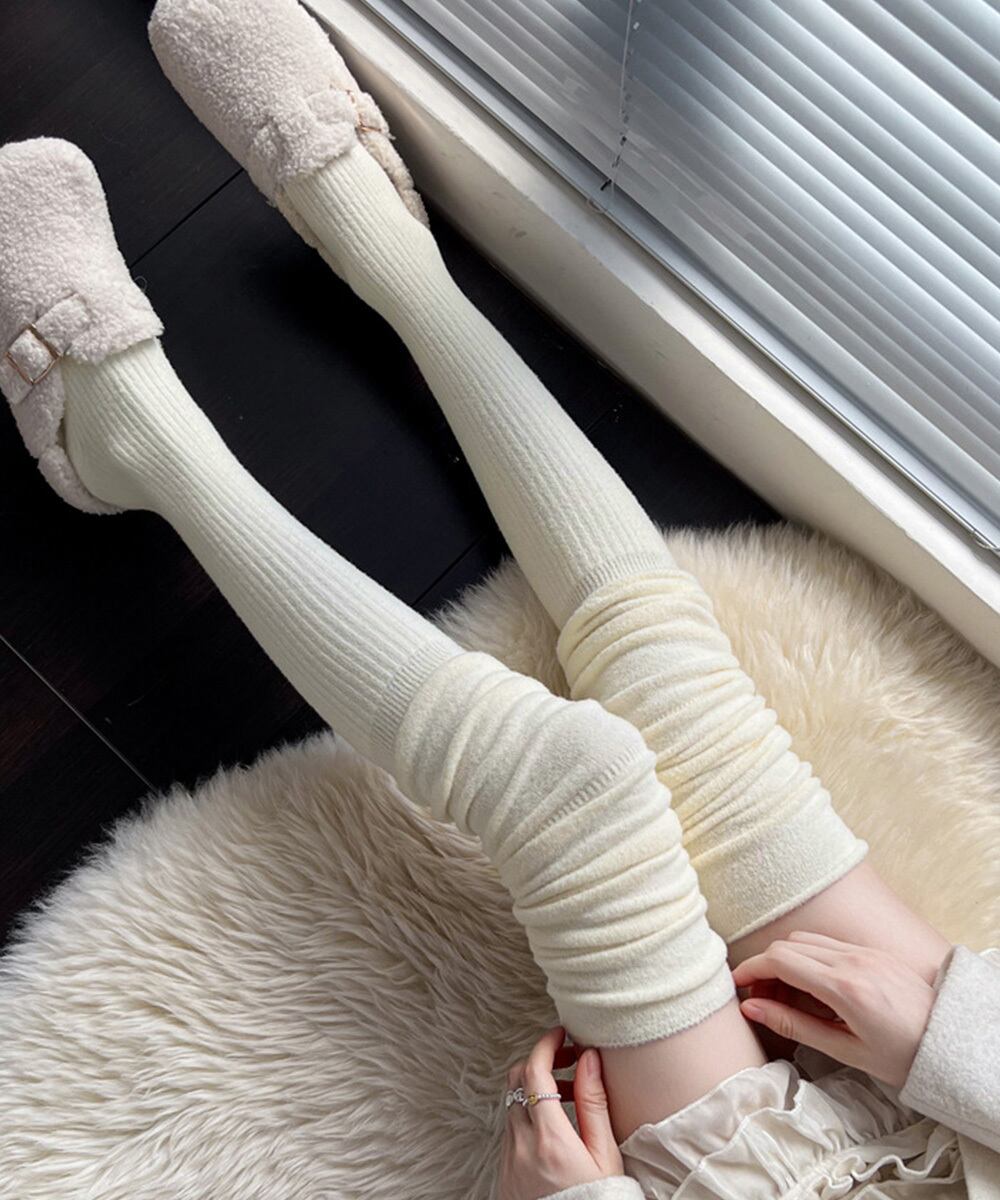 柔らかい 厚手サイハイソックス リブ切り替え 大人可愛い くしゅくしゅ靴下 無地 冷え対策 冬ロングソックス 防寒韓国風