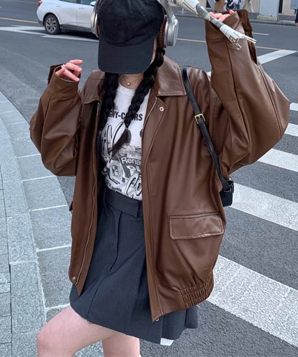 ライダースジャケット かっこいいブルゾン PUレザー 長袖アウター フェイクレザージャケット オーバーサイズ 防寒防風