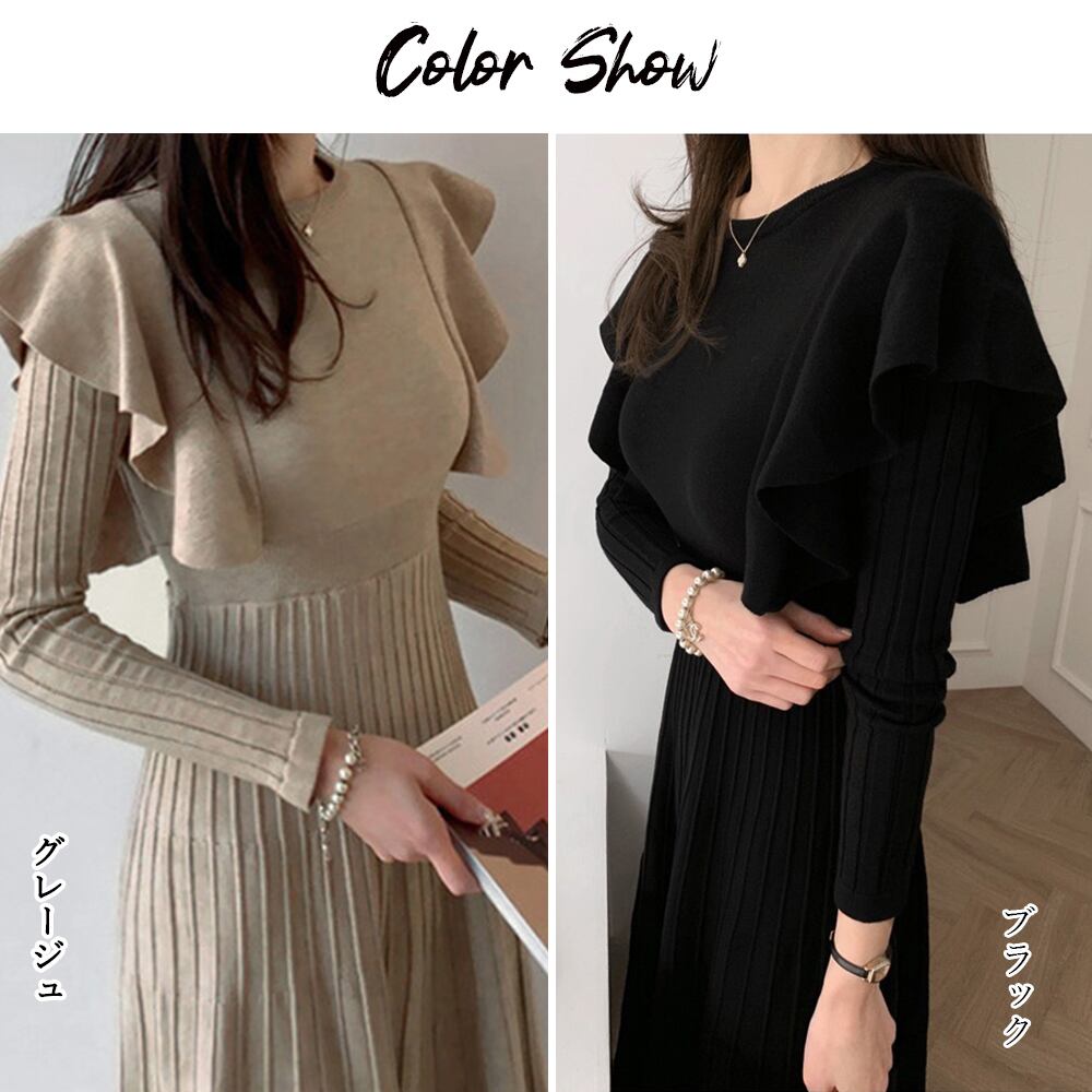 ショルダーフリルニットワンピース新作