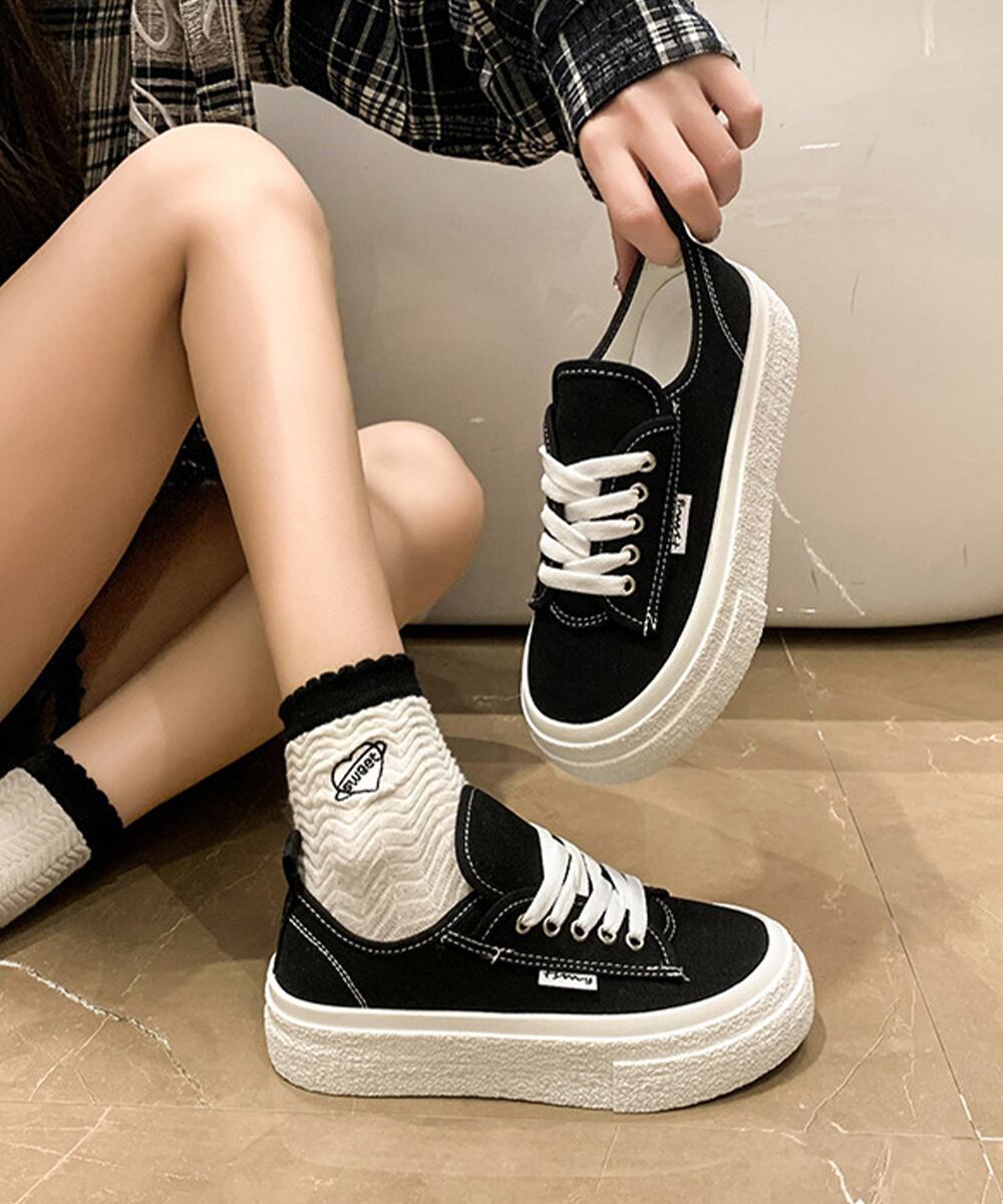 カジュアルキャンバスシューズ 歩きやすい フラットシューズ 履きやすい 韓国風 美脚 通学 旅行スニーカー おしゃれ新作