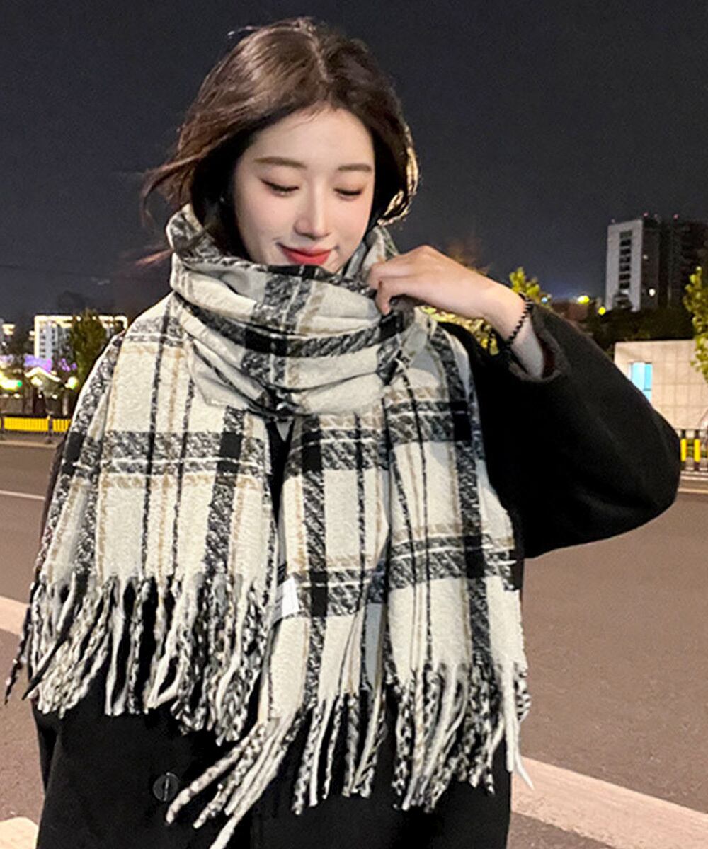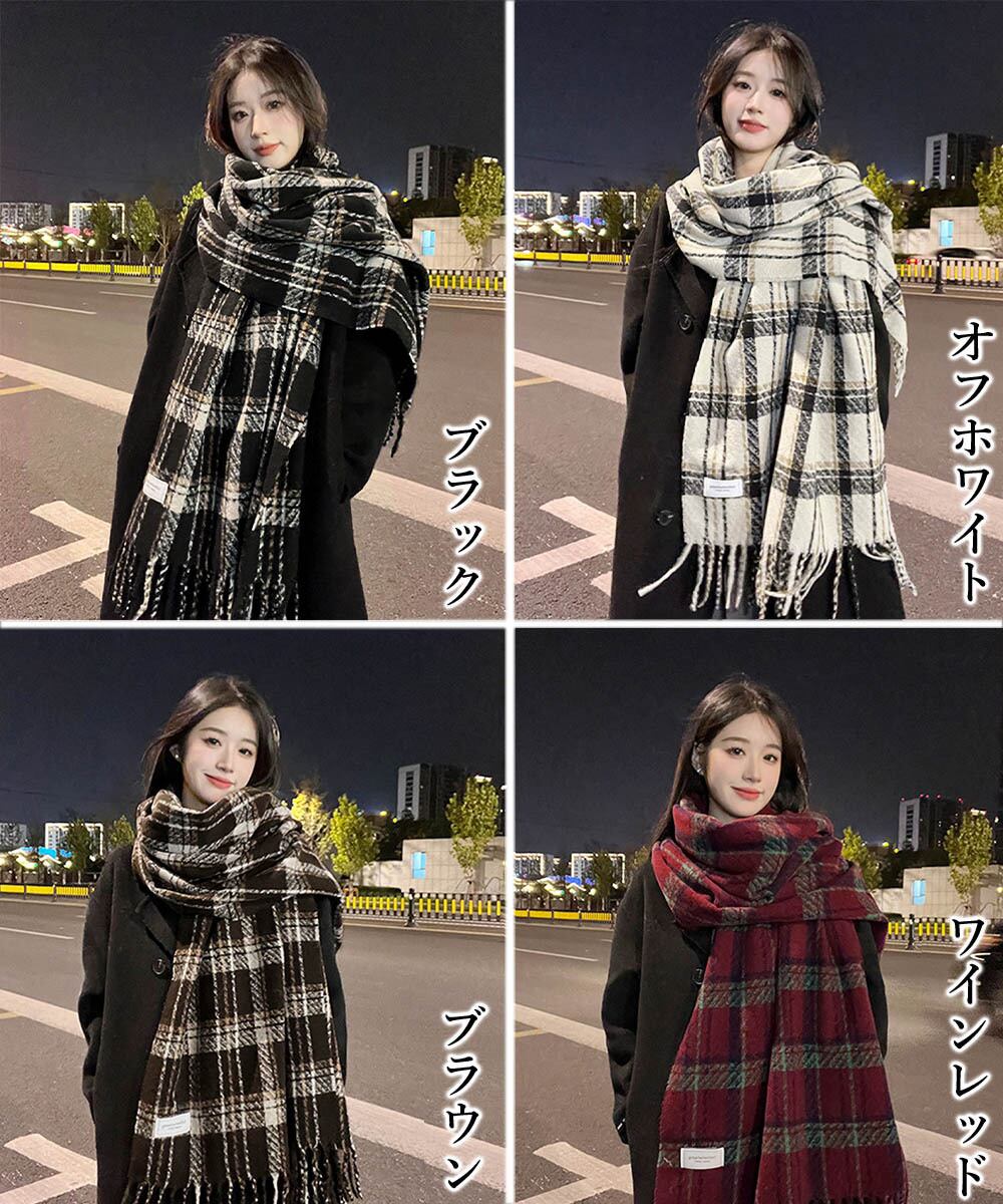 チェック柄ストール 大判フリンジマフラー