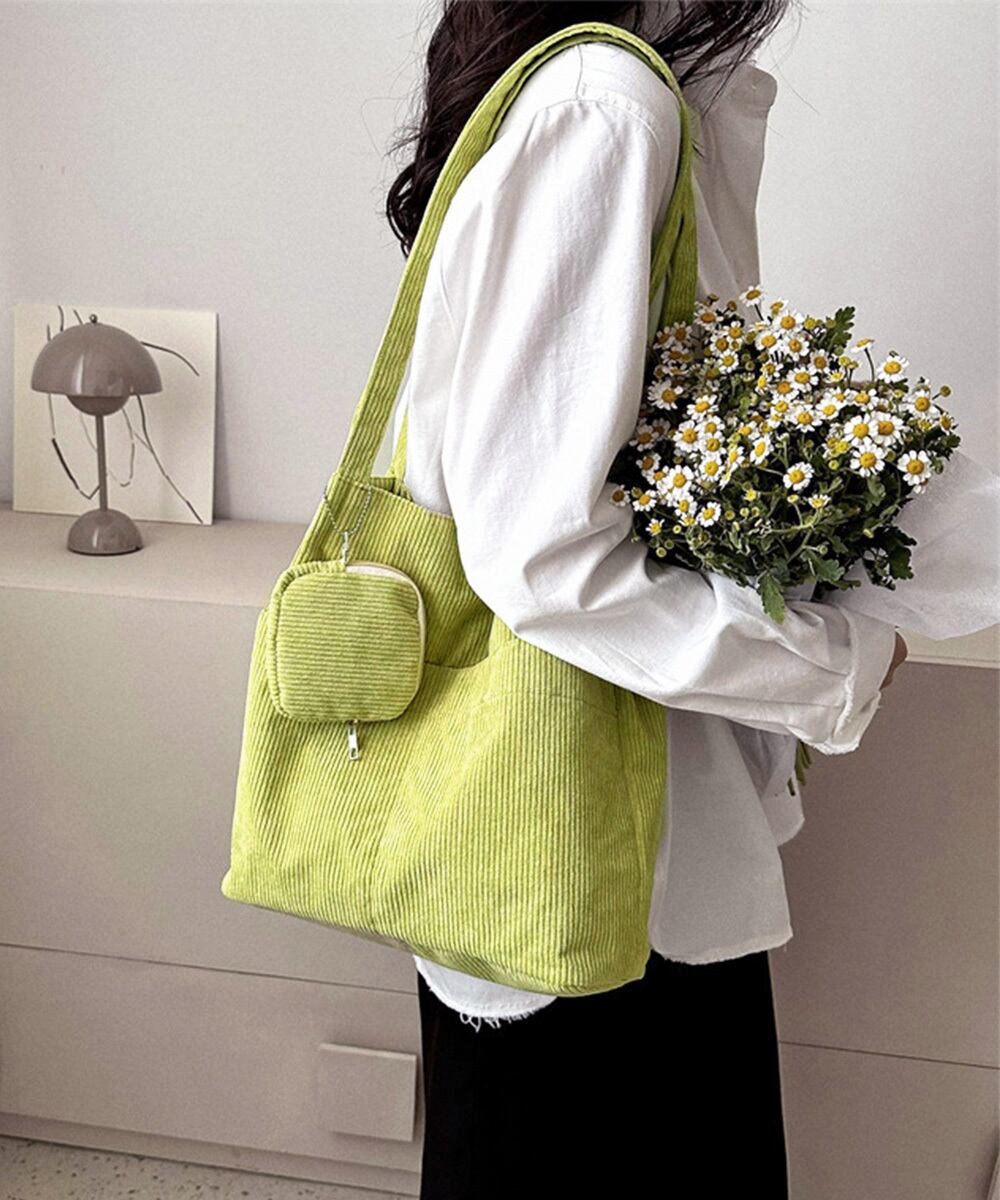 ポーチ付きコーデュロイトートバッグ大容量