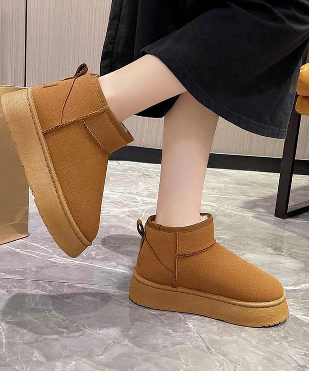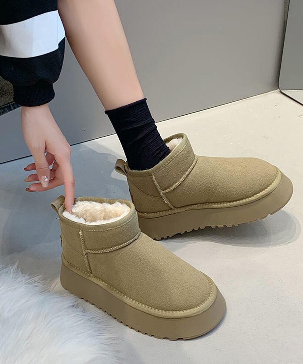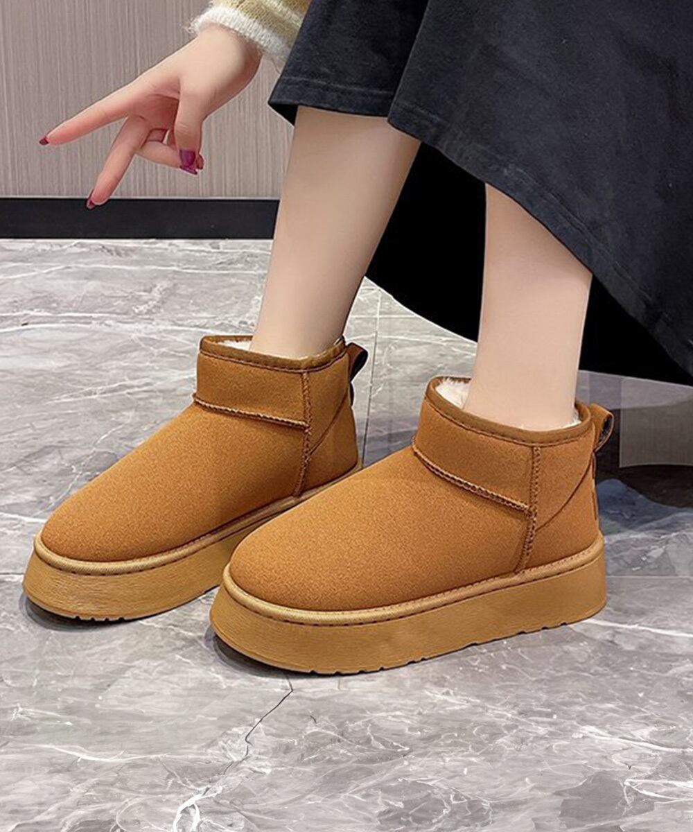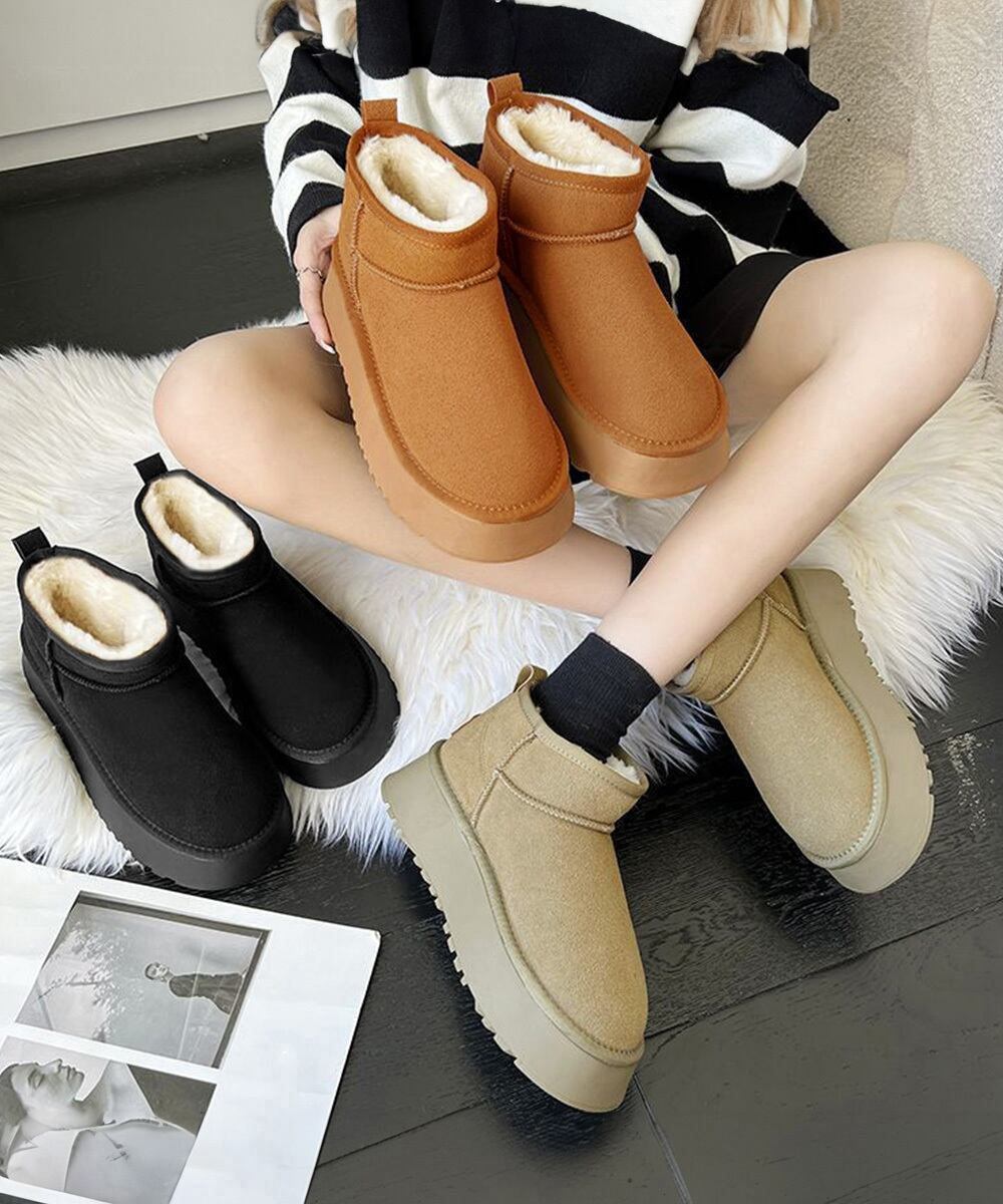 厚底ムートンブーツ 裏起毛ショートブーツ