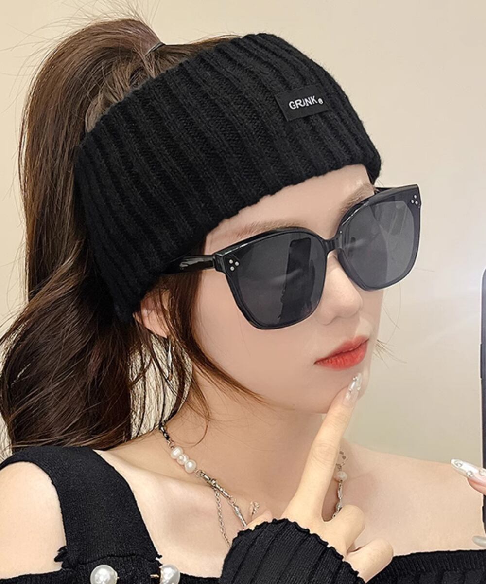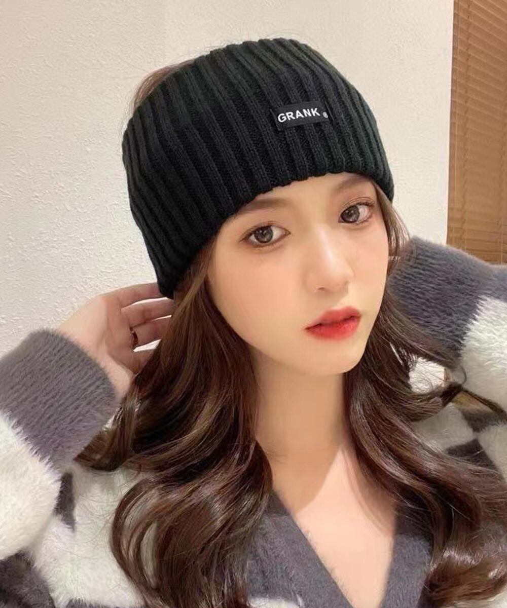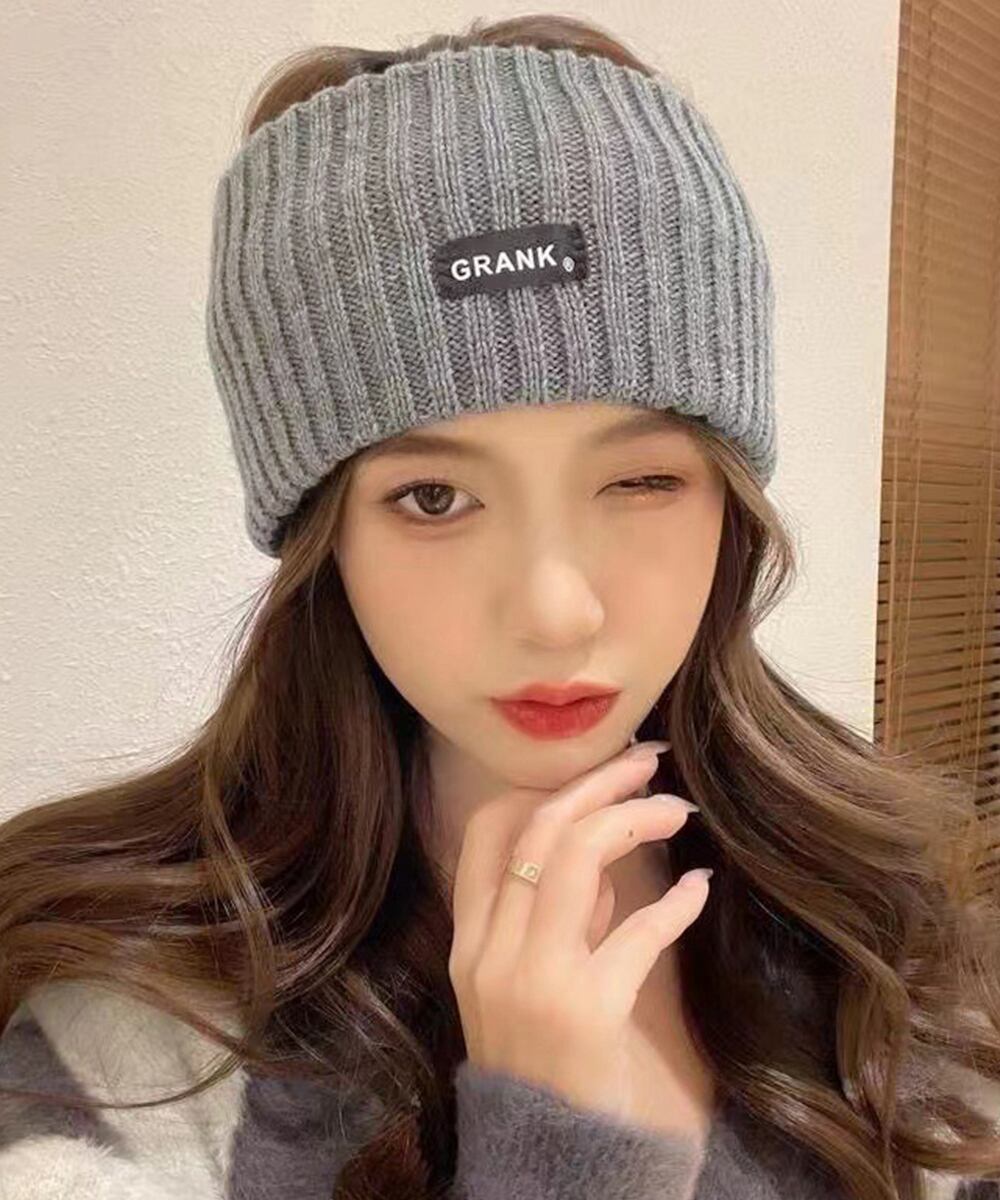 シンプルデザインにタグがアクセントのニットヘアバンド