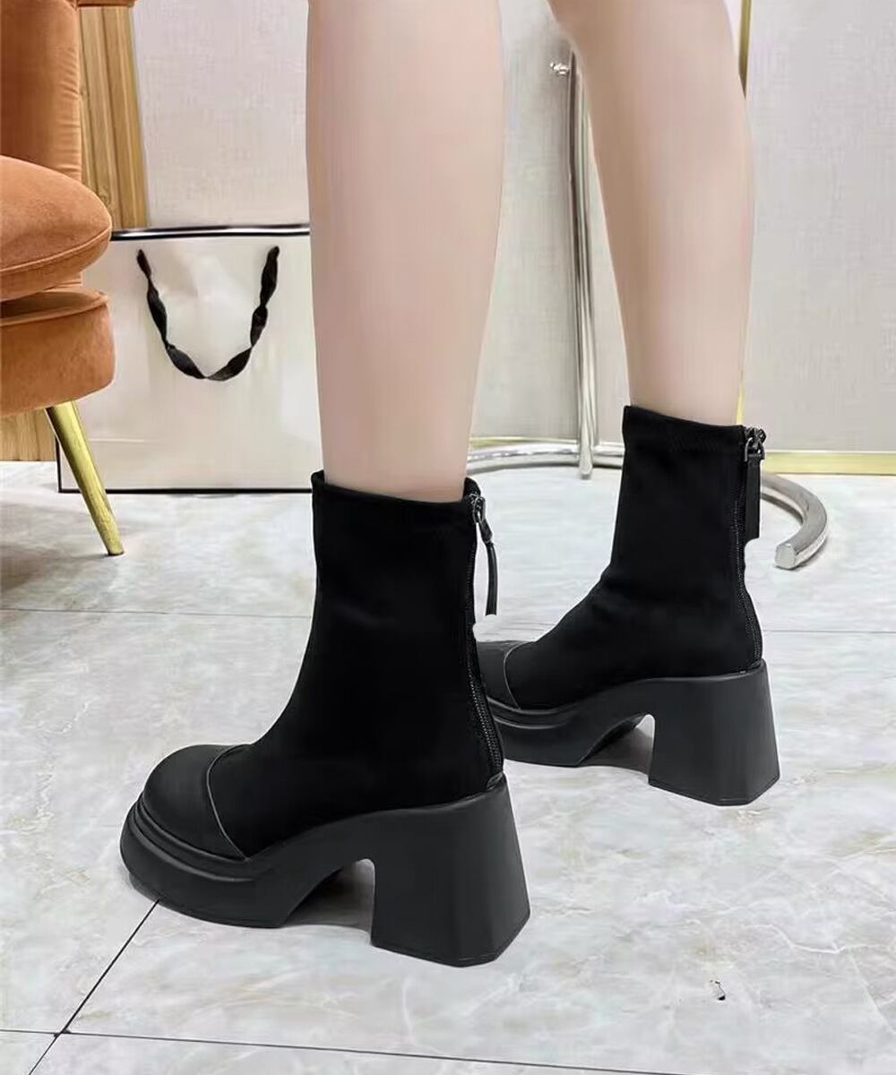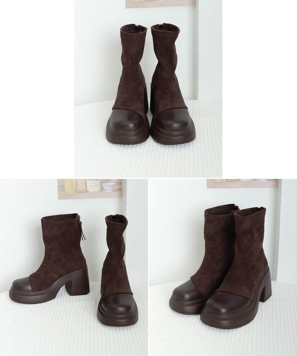 ダークブラウンとブラック2色展開の厚底ショートブーツ。