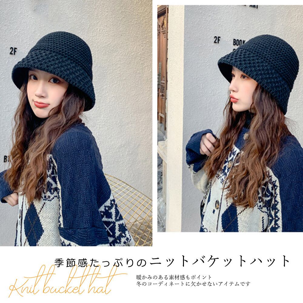 ニットバケットハット レディース ニットキャップ 韓国風 あったか ニット帽子