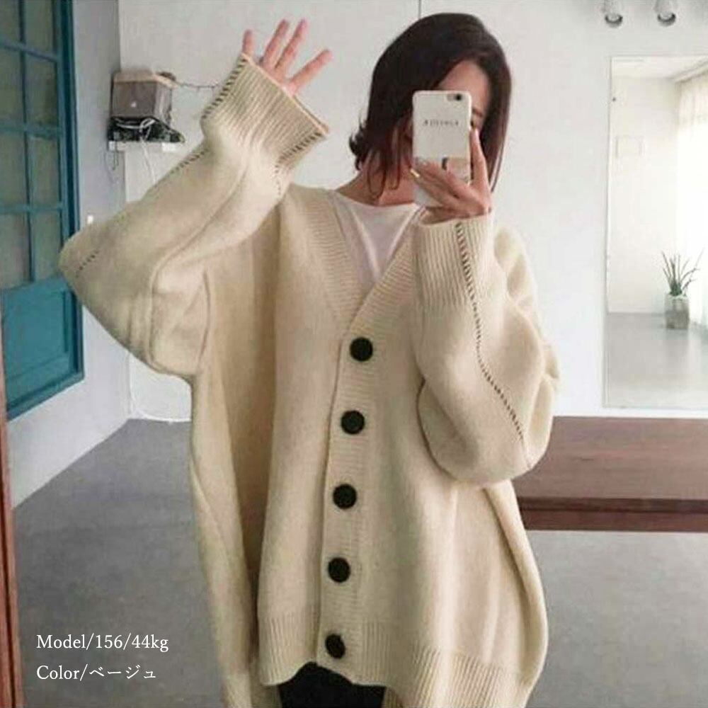 ゆったり 韓国風 トップス 羽織り vネックカーデ 体型カバー 長袖 中厚手 ドロップショルダー カーディガン 春秋冬